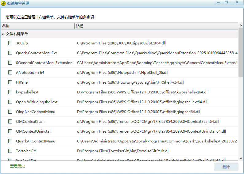 这个小工具是从360安全软件里提取出来的,专门用来管理右键菜单的没有任何广告和360全家桶。你只需要解压后双击运行,它就能快速扫描出所有右键菜单项,然后你可以选择要删除的项目,一键清理。