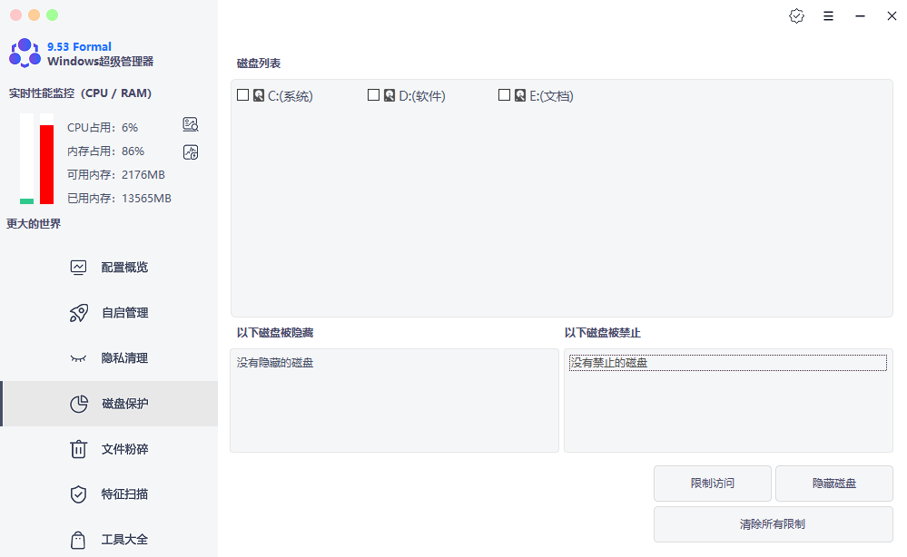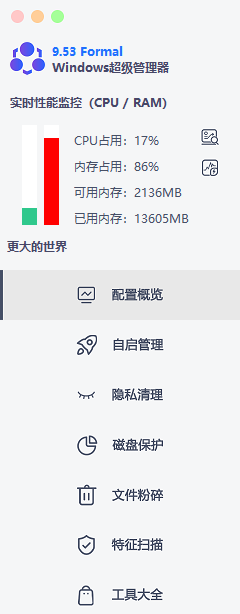 启动Windows超级管理器,你会被它清晰的功能分区所吸引。软件界面分为几个主要模块,每个模块都瞄准了Windows用户最常遇到的痛点。