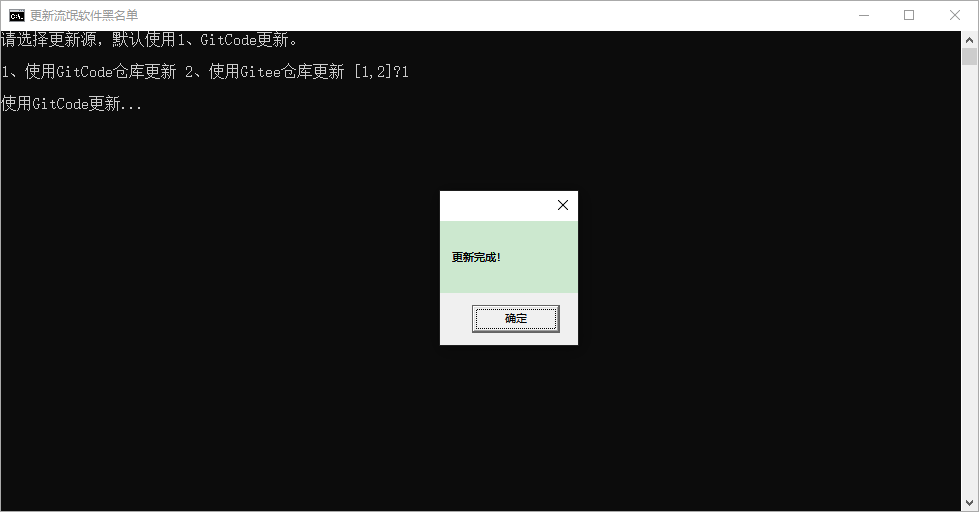 首次运行先执行更新流氓软件黑名单.bat 文件 先更新流氓软件库,运行之后效果如下如图: