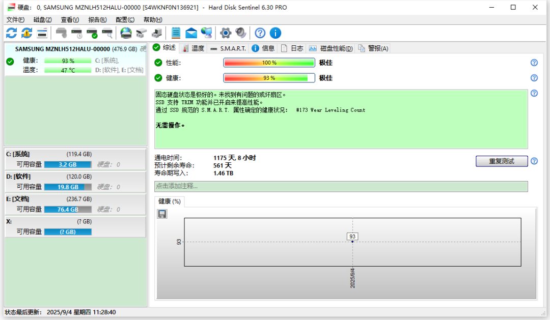 提前预警:通过温度、S.M.A.R.T.参数等指标判断硬盘是否“亚健康”。