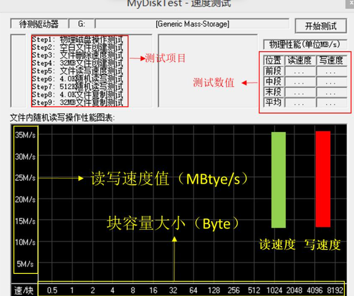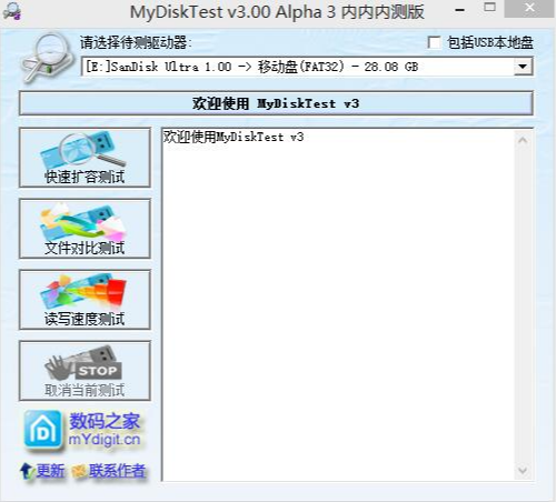 MyDiskTest 是一款专注于移动存储设备(U盘、SD卡、TF卡、CF卡等)检测的实用工具。它的主要功能就两点:
