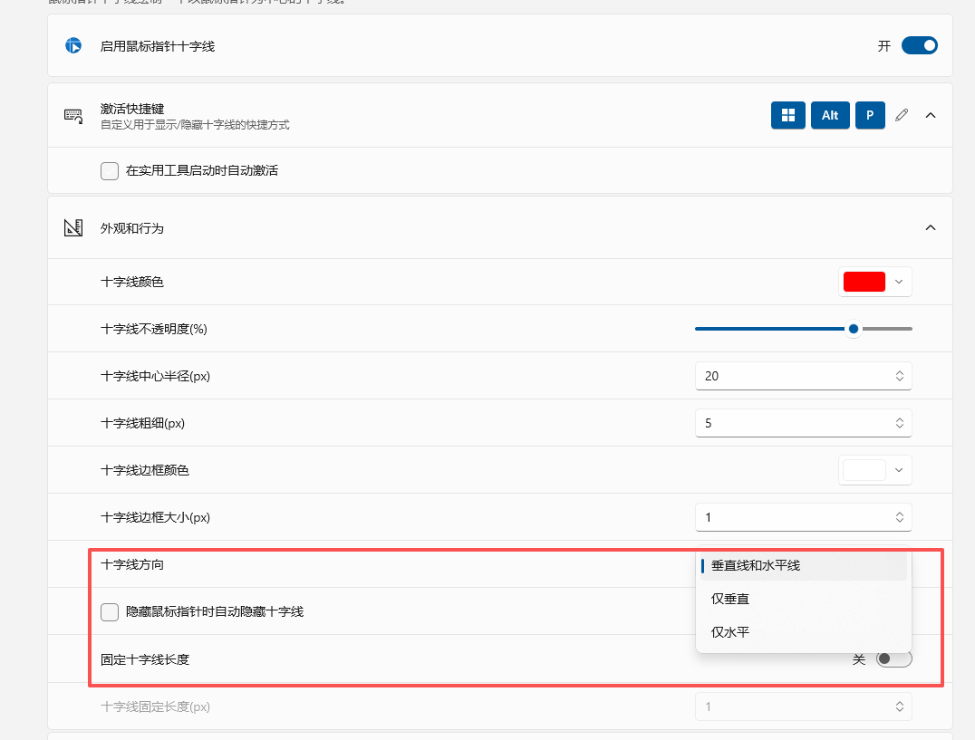 - 鼠标指针十字线可配置为仅水平、垂直或两者都显示