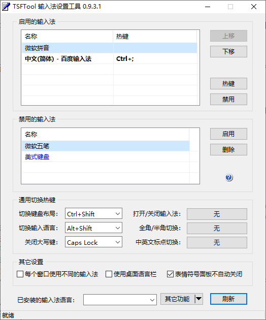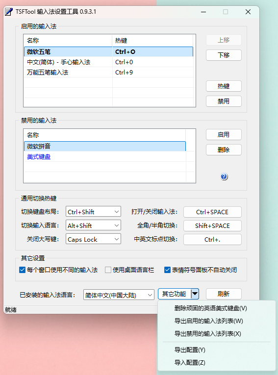 TSFTool 还能帮你设置一些常用的输入法快捷键!比如: